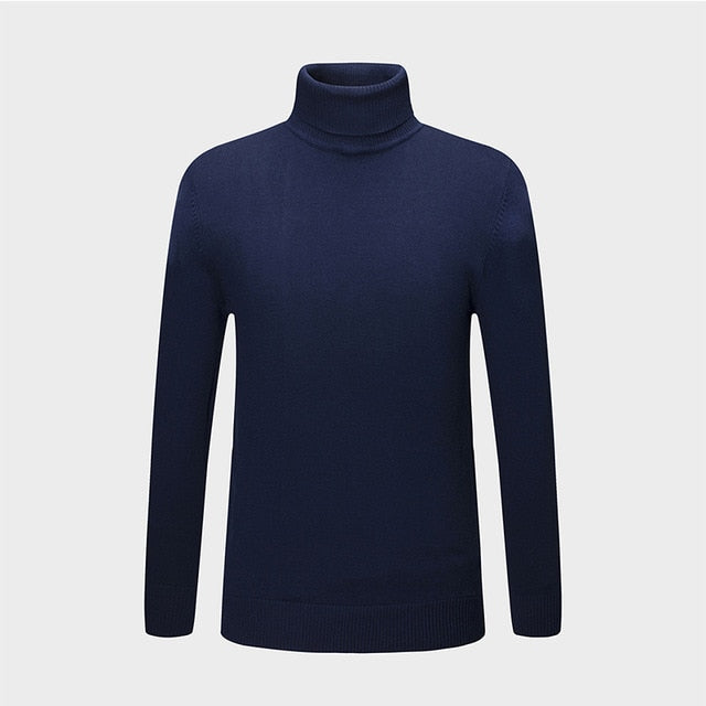 New Autumn Winter Fashion Brand Clothing Men's Sweaters Warm Slim Fit Turtleneck Men Pullover 100% Cotton Knitted Sweater Men